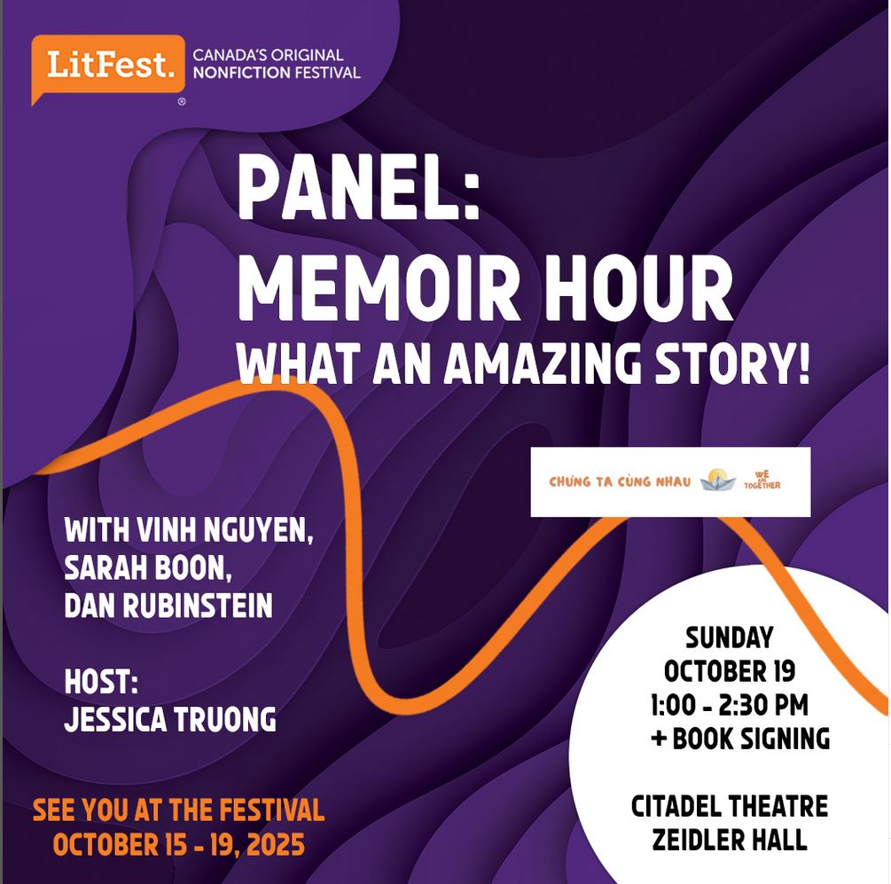Before the panel we had a bit of a meet and greet between panelists and moderator, and I could tell I was going to enjoy talking with them. I was so glad I had read both panelist’s books, as it provided a point of connection when we first met. One of the panelists, Vinh Nguyen, had just come from the Calgary LitFest (there are a lot of literary festivals going on at the same time: Victoria, Calgary, Vancouver, Edmonton, etc.). He was a character—very expansive and full of life. We hit it off immediately.